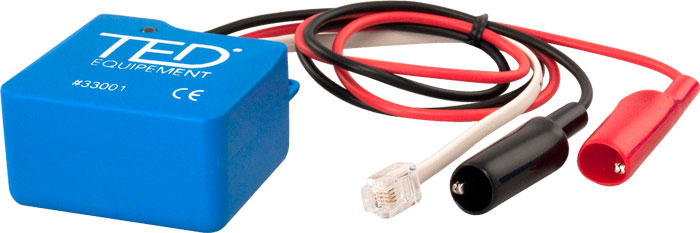 Connectique RJ11 et 2 pinces crocodiles disponibles sur le générateur pour le raccordement sur les paires torsadées, prise femelle RJ11 et câble coaxial