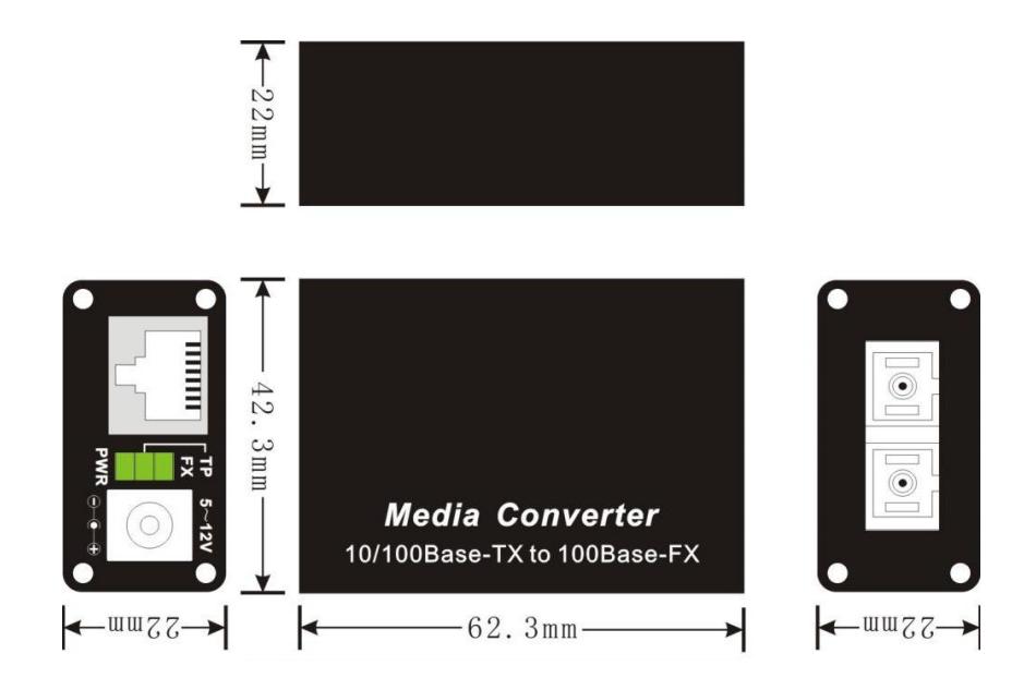 1×100Base-FX to 1×10/100Base-TX PortRJ45 support auto MDI/MDI-X functionAuto-negotiation speed, half/full-duplexEach port has the complete LED Indicator lightSupport IEEE802.1d Spanning TreeSupports high performance QoS function on each portFlow control fully supportedSupport broadcast storm protectionWide-range redundant power design ( 4.5~20VDC )Support max forwarding packet length 1552 bytes optionRequires no configuration and will instantly operate as soon as you power it upSmall volume, light weightHigh-grade aluminum alloy shell with speedily heat dissipationLow power consumption, power is only 1W when each port is working