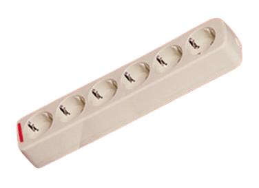 220V накладная розетка. 6-местная, с заземлением. Цвет - бежевый.