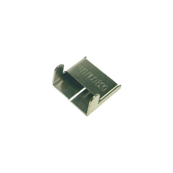 Stainless steel clips used with stainless steel bands.